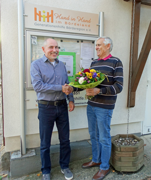Häufig treten betagte Personen erst dann in den Verein ein, wenn Sie Hilfe benötigen. „Alle sind uns willkommen, aber ganz besonders schön ist es, wenn sich schon Jüngere dem Gedanken der nachbarschaftlichen Hilfe anschließen“, freut sich Günther Becker, als er das 600. Mitglied mit einem Blumenstrauß begrüßt.
